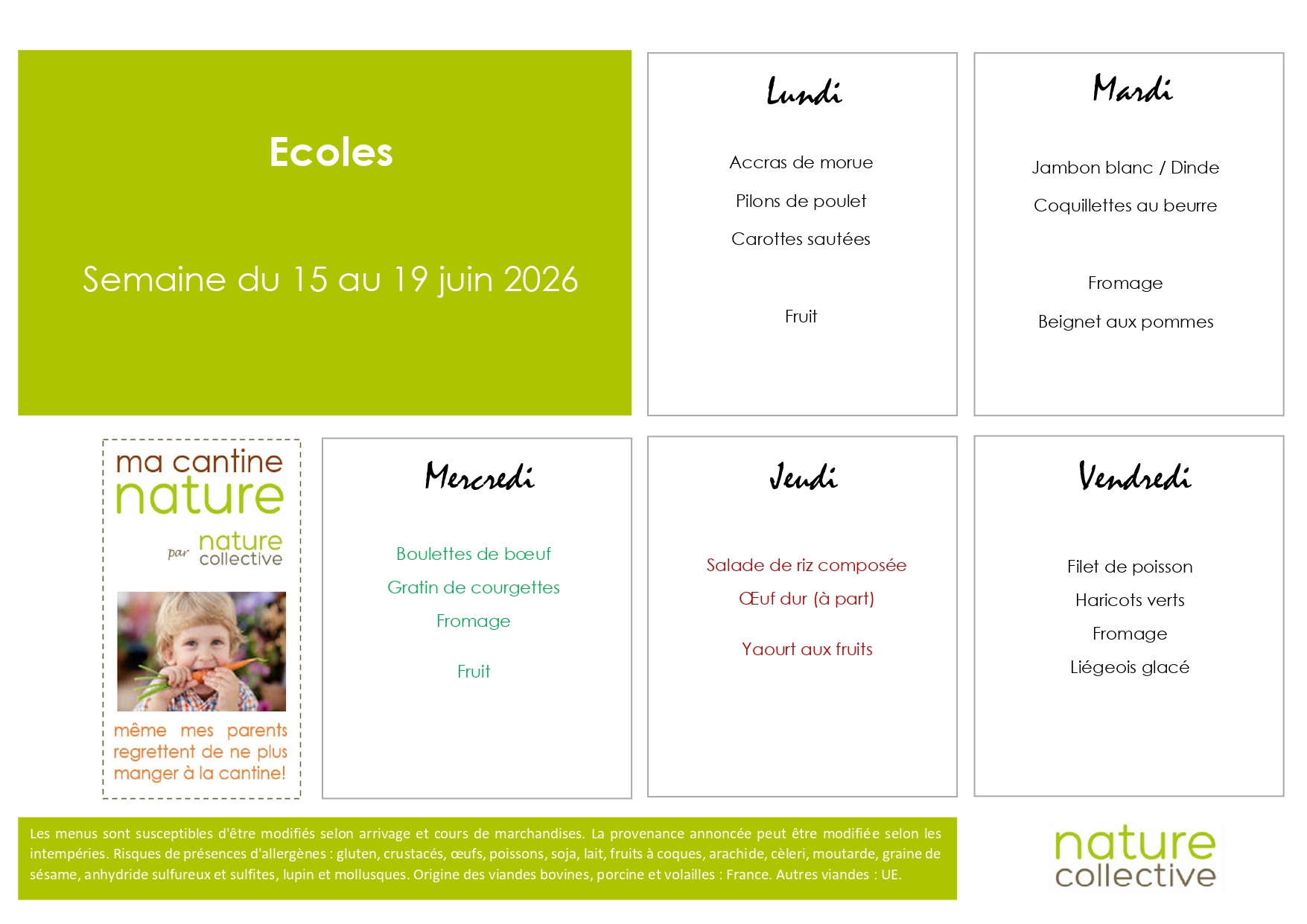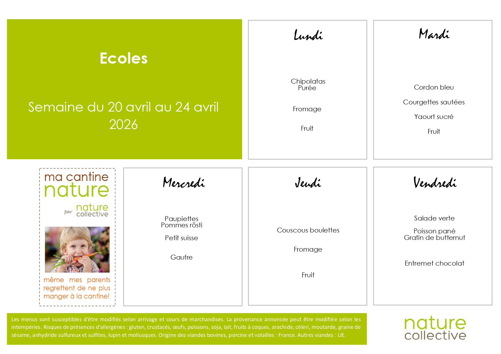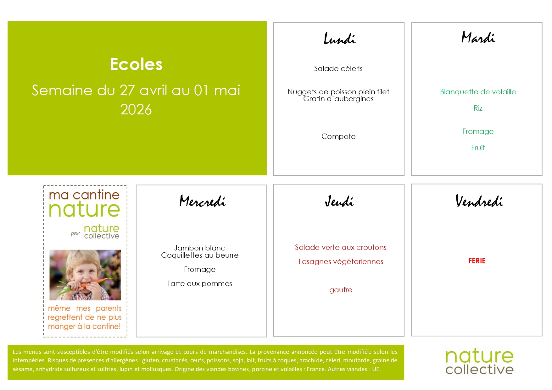 Accueil > Actualités > Menus Centre de loisirs Menus Centre de loisirs Menus Vacances Avril / Mercredis Mai, Juin, Juillet
