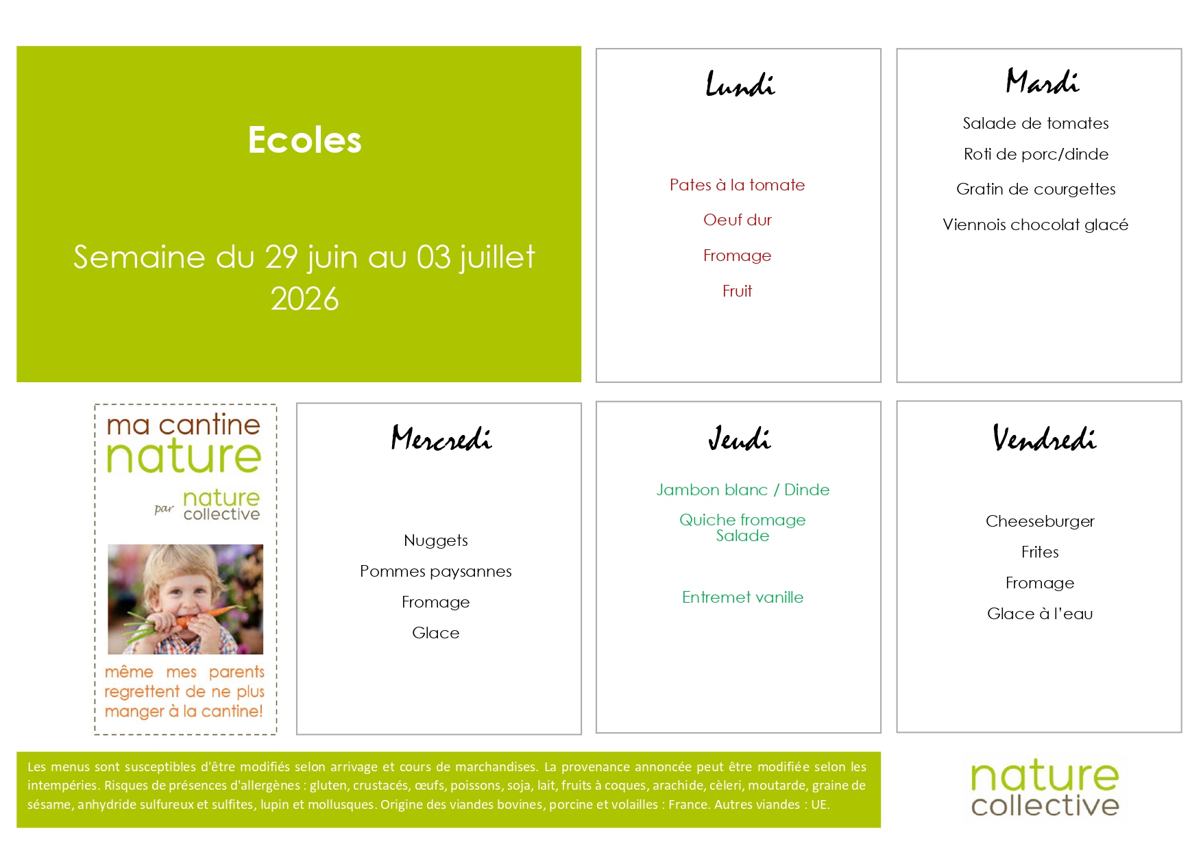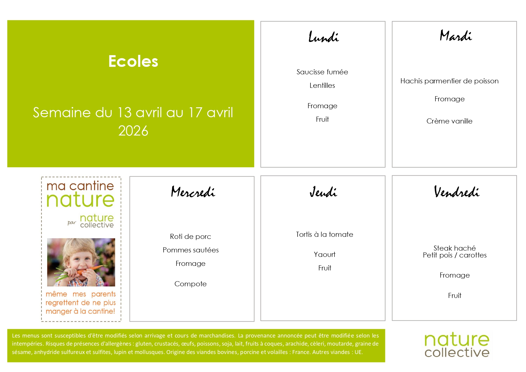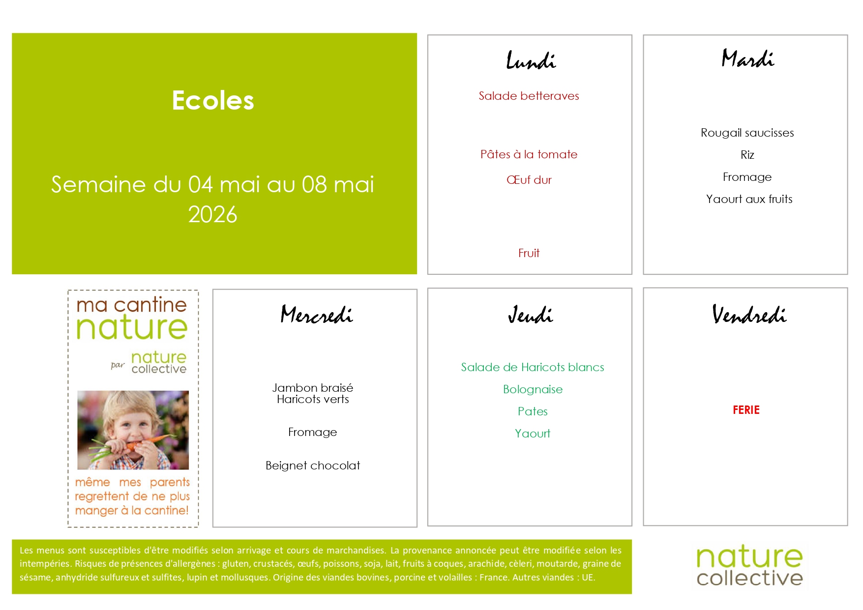 Accueil > Actualités > Menus Centre de loisirs Menus Centre de loisirs Menus Vacances Avril / Mercredis Mai, Juin, Juillet