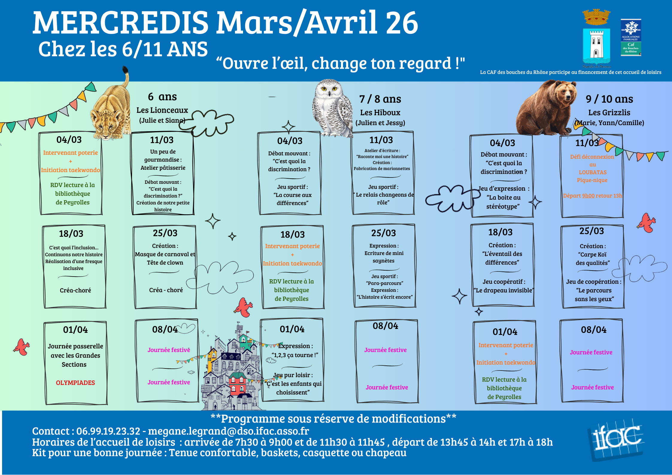 De mars à avril, les 6–11 ans vivent des mercredis placés sous le signe de la curiosité, du partage et de l’ouverture ![]()