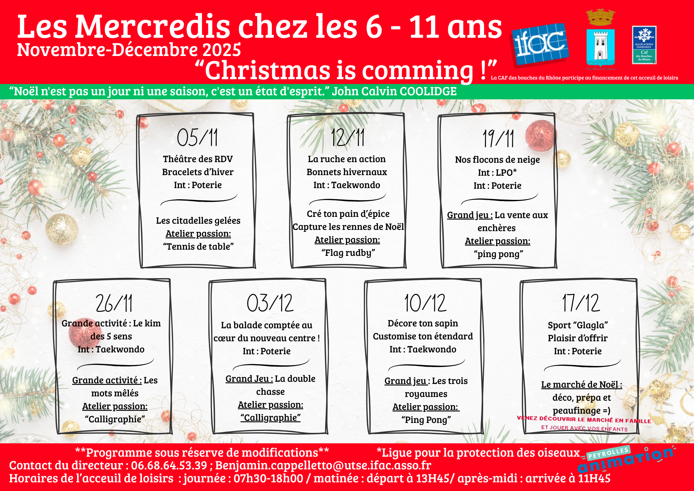 Accueil > Actualités > Programme 6/11 ans_Mercredis NovDec 25 Programme 6/11 ans_Mercredis NovDec 25 Planning Découvrez nos activités pour ces prochains mercredis ! Téléchargez nos programmes Programmes des 6/11 ans